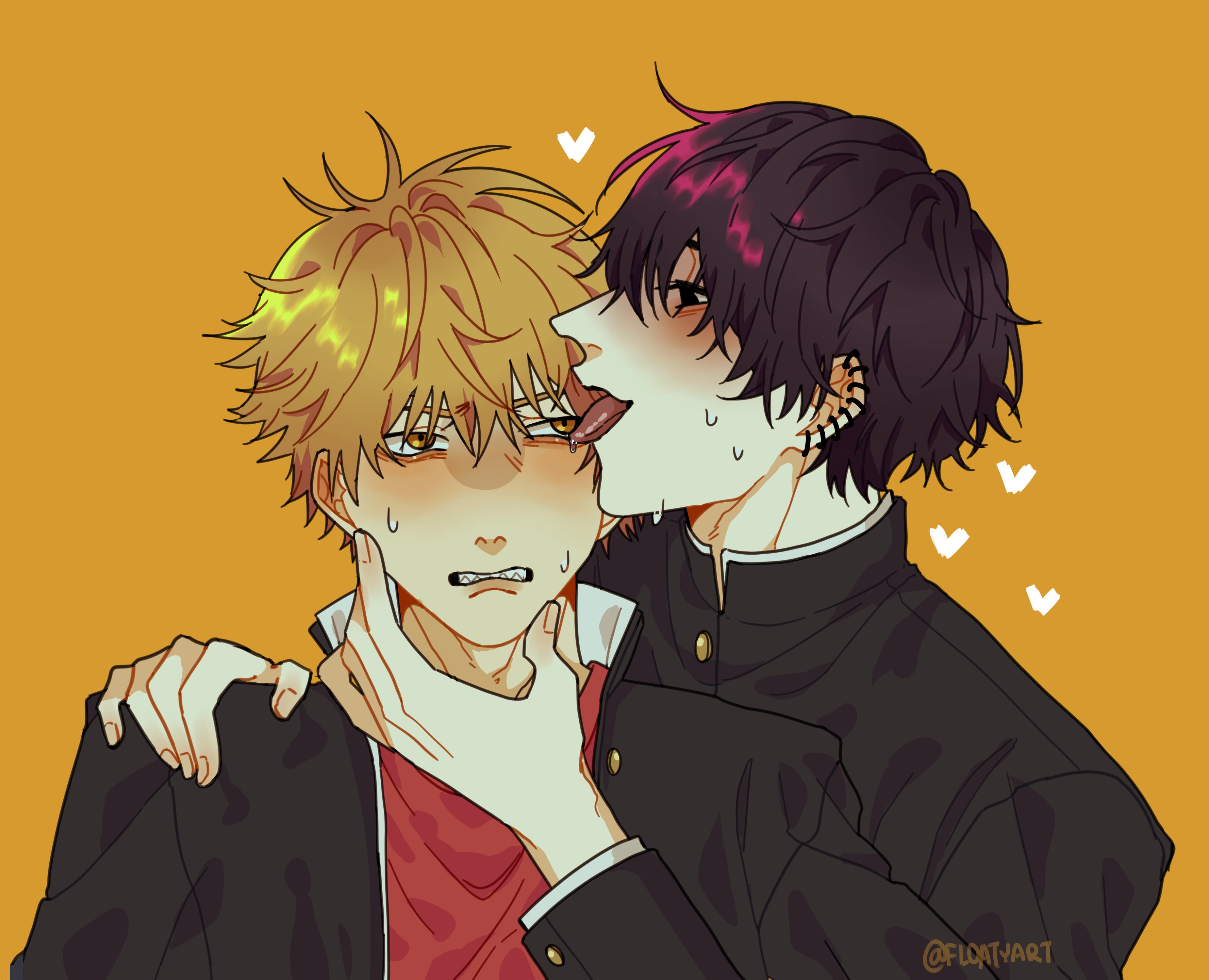 purple bonus, supon, eyebrows, painting (medium), traditional media, watercolor (medium), 1girl, :>, blue background, blue eyes, blush, breasts, collarbone, colored skin, dual persona, fang, fangs, long tongue, looking at viewer, monster girl, multiple views, nipples, nude, open mouth, pale skin, saliva, sea angel, short hair, smile, tentacles, tongue, tongue out, white hair, white skin, yandere