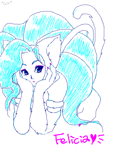 1girlanimal earsanimal handsbig hairblue eyesblue hairbreastscat earscat tailcharacter namecleavagefemale focushead restlooking at viewermatching hair/eyessolotail