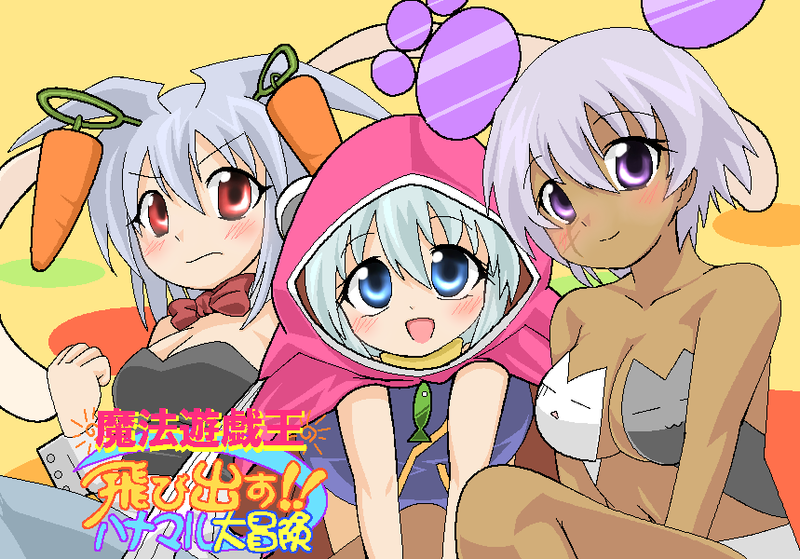 3girlsanimal earsblue eyesblue hairblushbreastscleavagedark skindark-skinned femaledemon girlhornsmedium breastsmultiple girlspurple eyespurple hairred eyesshort hairtwintailswings