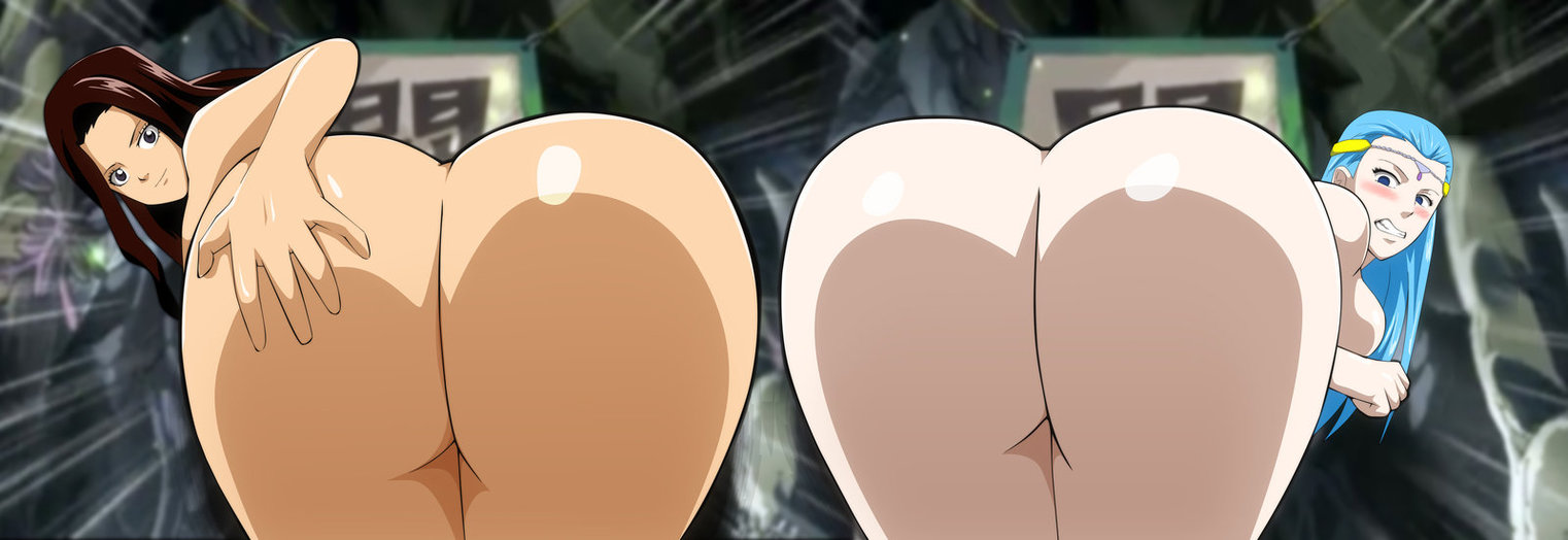 apple buttaquariusassbackgroundblue eyesblue hairblushbrown hairclenched teethdat assFlag for Deletionhand on asshuge asslooking at viewerposingpresentingpurple eyessmile