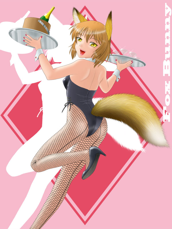 1girlalcoholanimal earsbottlebrown hairfemale focusfishnet pantyhosefishnetsfox earsfox tailhigh heelsnontraditional playboy bunnypantyhoseplayboy bunnyshoesshort hairsolotailtraywineyellow eyes
