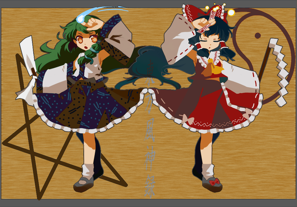 2girlsblack hairclosed eyesdetached sleevesfemale focusgoheigreen eyesgreen hairlong sleeveslooking at viewermultiple girlsnontraditional mikooonusasymmetry