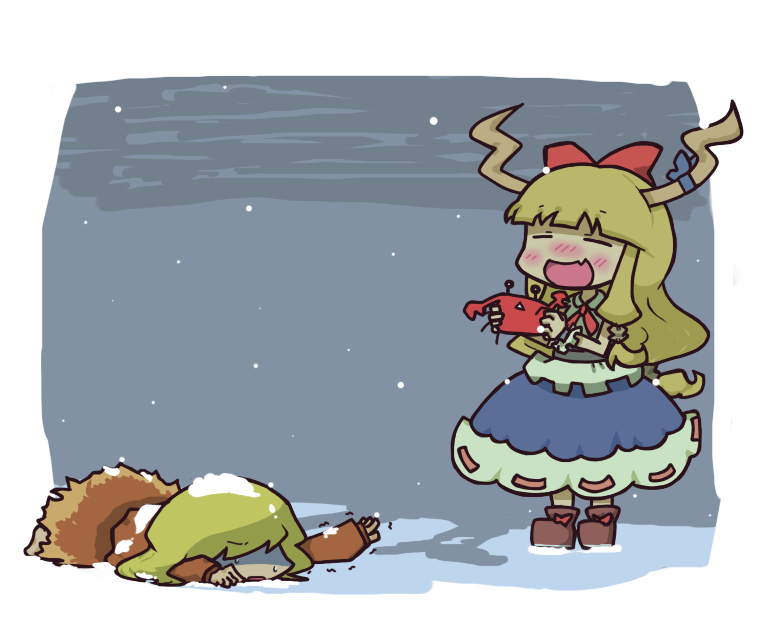 bit (kksbit), mystia lorelei, touhou, bit, bad id, bad pixiv id, translated, 1girl, chair, female focus, food stand, grill, monster, mountain, solo, wings