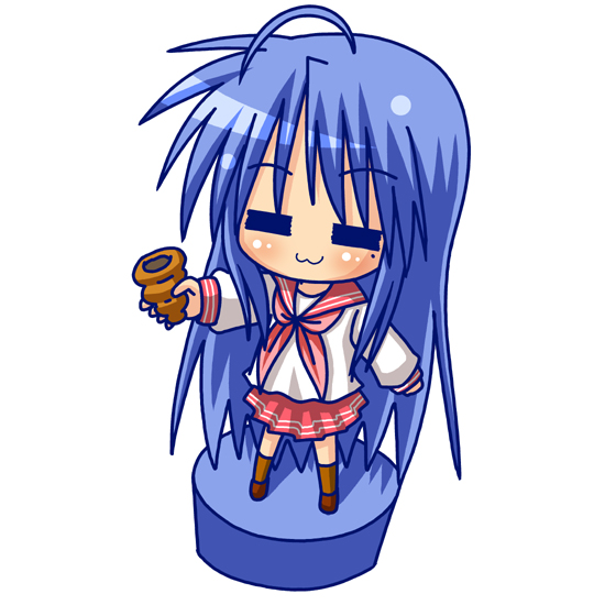 :300s1girlahogeblue hairchibichocolate cornetfemale focusfoodlong hairmolemole under eyeschool uniformserafukusolo