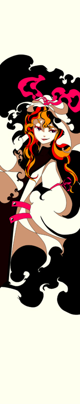 1girlabstractblonde hairexpressionlessfemale focushatlong hairlooking at viewermob cappurple eyessimple backgroundsittingsolowhite background