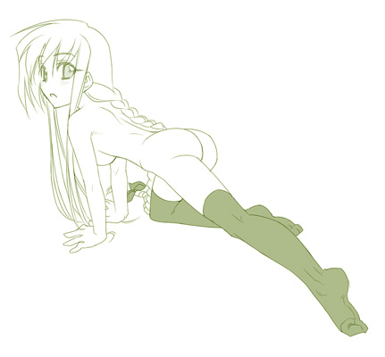00s1girlall foursassbackbraidbreastsfeetfemale focusgreen themelong hairlooking backmedium breastsmonochromenudesolothighhighsvery long hair