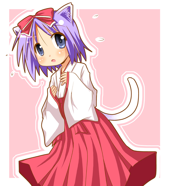 00s1girlanimal earsblue eyescat earscat tailfemale focushair ribbonhakamahakama skirtjapanese clothesmikopurple hairred hakamaribbonshort hairsimple backgroundskirtsolotail