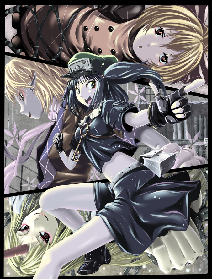 yamamura hiroki, ayano (usaneko), usaneko, 1girl, animal ears, bdsm, belt, blue hair, bondage, bound, brown eyes, buckle, censored, collar, corset, dominatrix, erection, femdom, handjob, latex, lingerie, mosaic censoring, nude, penis, pet play, rabbit ears, shiny clothes, slave, solo focus, thighhighs, torture, underwear, whip