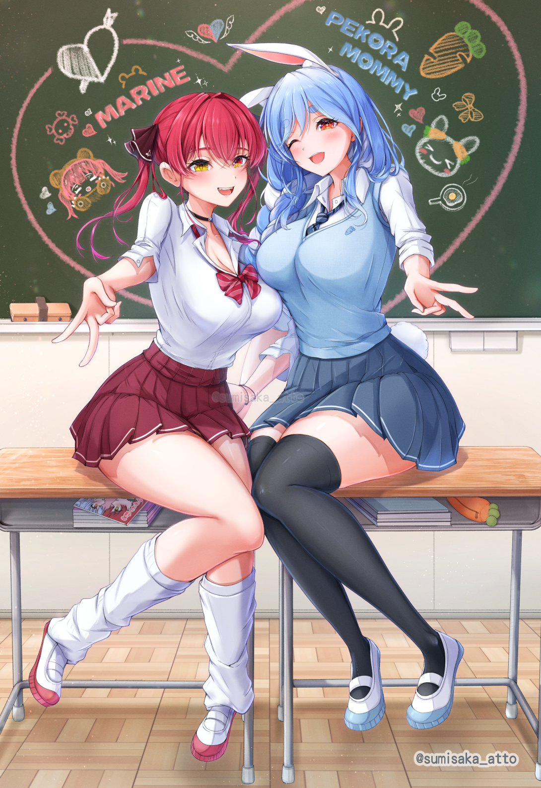40010prototype, fate testarossa, takamachi nanoha, lyrical nanoha, mahou shoujo lyrical nanoha, 00s, 1girl, bent over, blonde hair, breasts, downblouse, female focus, long hair, nipple slip, nipples, no bra, one eye closed, red eyes, small breasts, solo, thigh gap, twintails, very long hair, wink