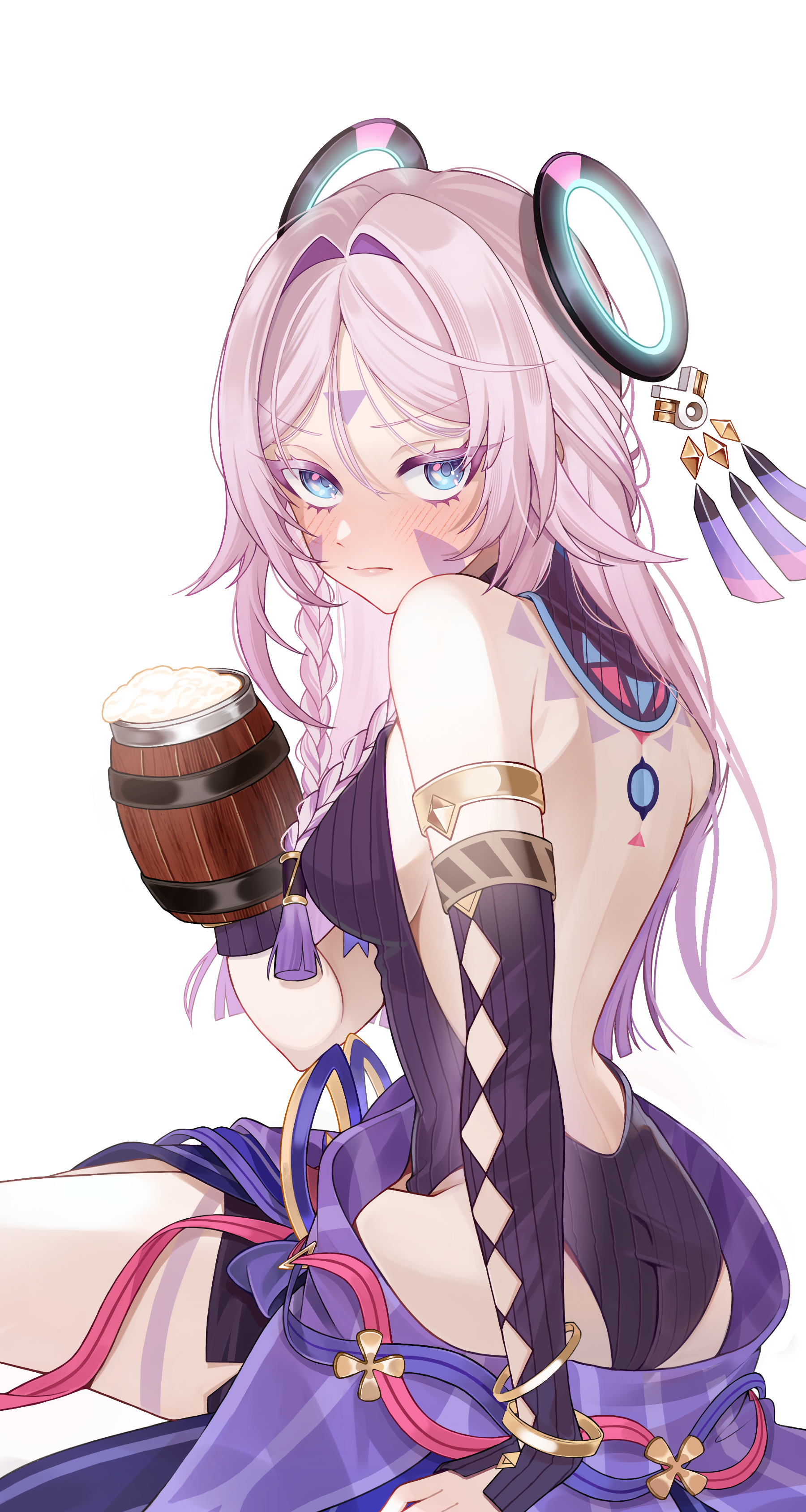 yoshikage (yo4kage), bobobo-bo bo-bobo, 1girl, armor, bracer, breastplate, breasts, dragon ball (object), dress, envelope, eyelashes, from below, green hair, holding, holding dragon ball, holding envelope, knee armor, large breasts, long hair, looking at viewer, looking down, purple eyes, ramune (bobobo-bo bo-bobo), shoulder armor, signature, solo, straight hair, tareme, tight clothes, tight dress, white dress