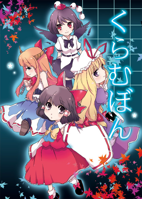4girlsalcoholascotbad anatomybeltblack wingsblonde hairblue eyesbowbrown eyesbrown hairchaindetached sleevesexpressionlessfemale focushair bowhathornsleaflong hairlooking at viewermaple leafmultiple girlspoorly drawnprofilesakeshirtshort hairskirtskirt setsleevelesssleeveless shirtsmiletokin hatvery long hairwings