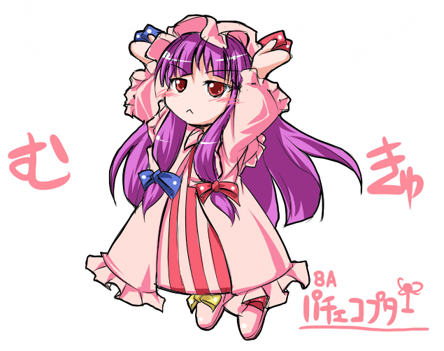 :o1boy1girlarms upchibifemale focuslong hairmukyuuoutstretched armspurple hairred eyessolowhite background