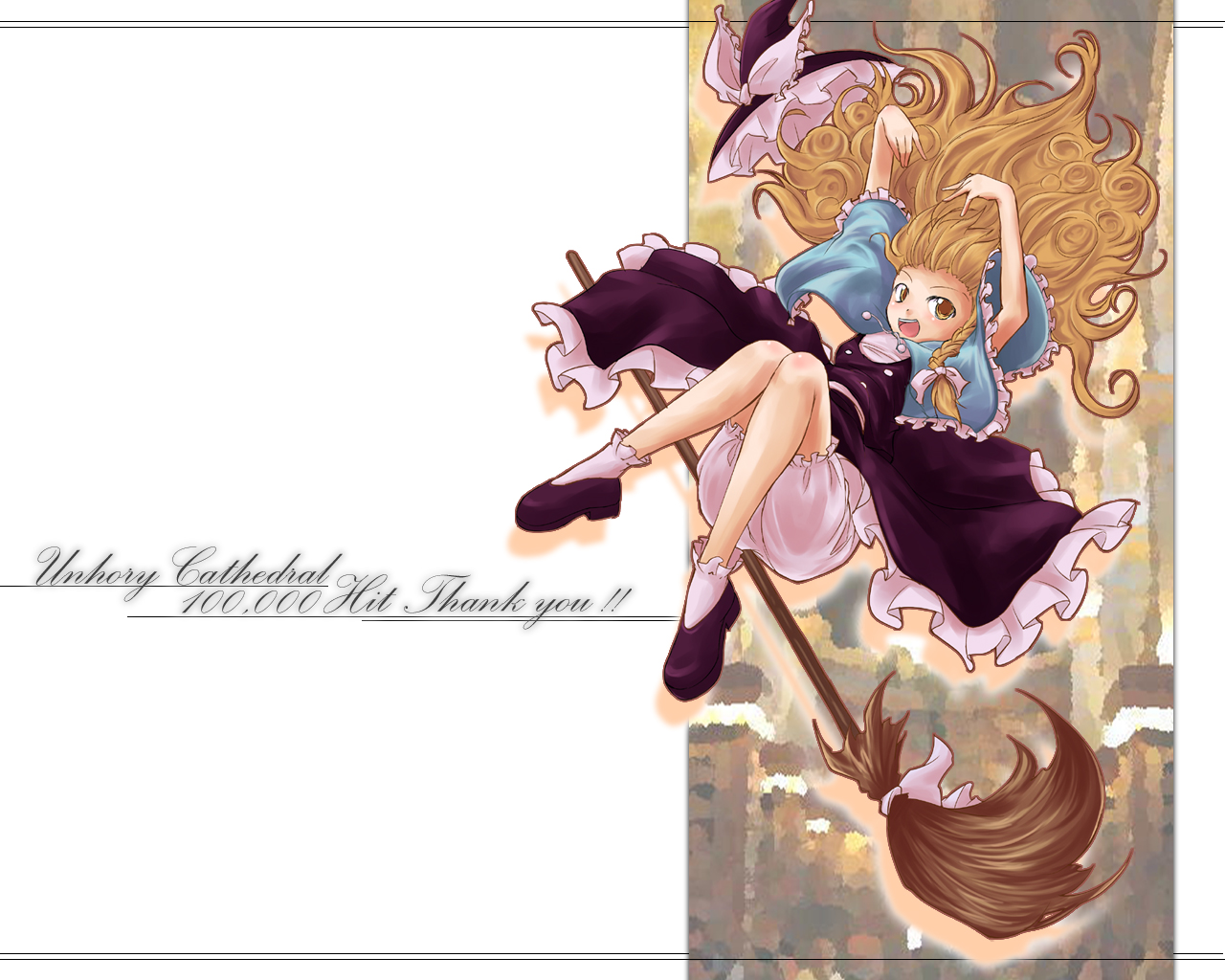 1girlblonde hairbloomersbraidbroomdressfemale focushatmilestone celebrationsolounderwearwitchwitch hatyellow eyes