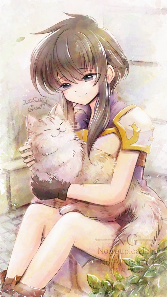 aether gazer, highres, official art, second-party source, 1girl, blue eyes, breasts, cleavage, closed mouth, copyright name, copyright notice, earrings, jewelry, long braid, long hair, looking at viewer, pillow, smile, solo, stuffed animal, stuffed dolphin, stuffed toy