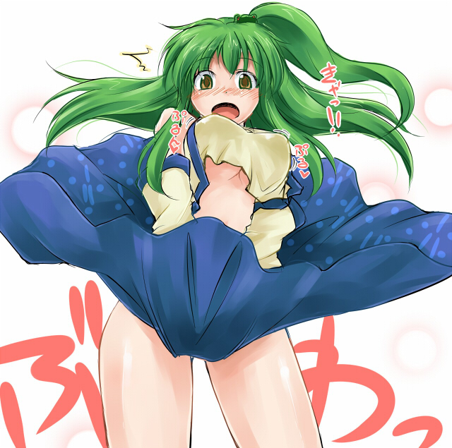 mani (manidrawings), gumi, vocaloid, commentary request, highres, 1girl, :d, ^ ^, blush, closed eyes, closed mouth, cropped torso, facing viewer, goggles, goggles on head, green hair, hands up, heart, jacket, medium hair, open clothes, open jacket, open mouth, orange jacket, red-tinted eyewear, shirt, simple background, smile, solo, three-quarter sleeves, tinted eyewear, twitter username, white background, yellow shirt