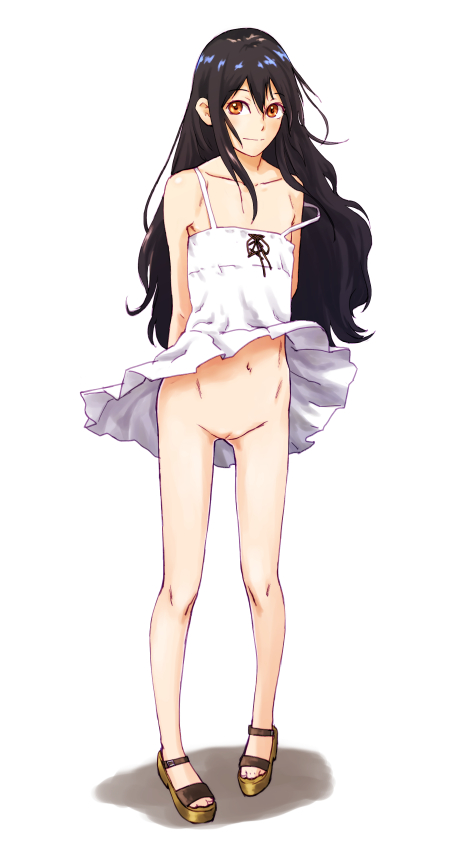 black hairbrown eyesfemaleFlag for Deletionlong hairlooking at viewernavelno pantiespussysolouncensored