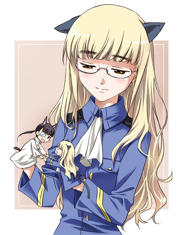 00s1girlanimal earsblonde haircat earscharacter dolldollfemale focusglasseshand puppetlight smilemilitarymilitary uniformpuppetsmilesolotail