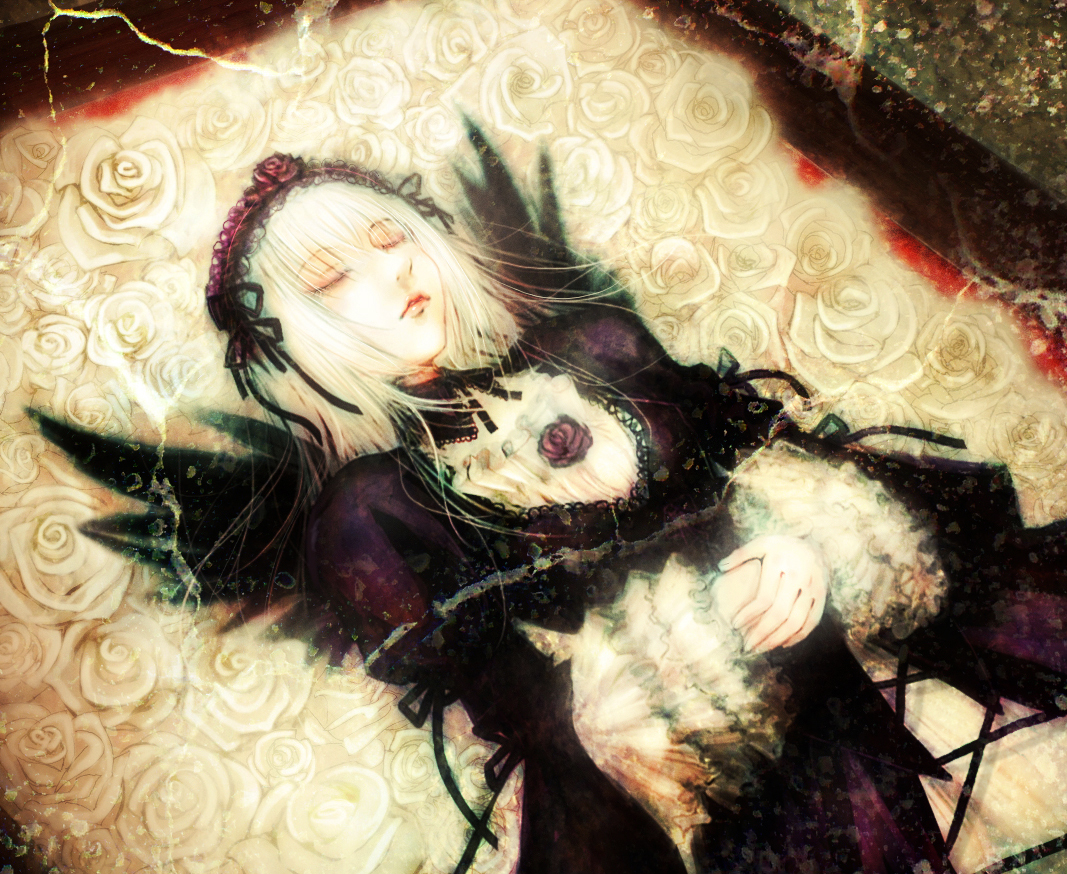 saya (cosplayer), silver hair, photo (medium), 1girl, balloon, bow, cosplay, couch, dress, hair bow, polka dot, polka dot dress, red upholstery, ribbon