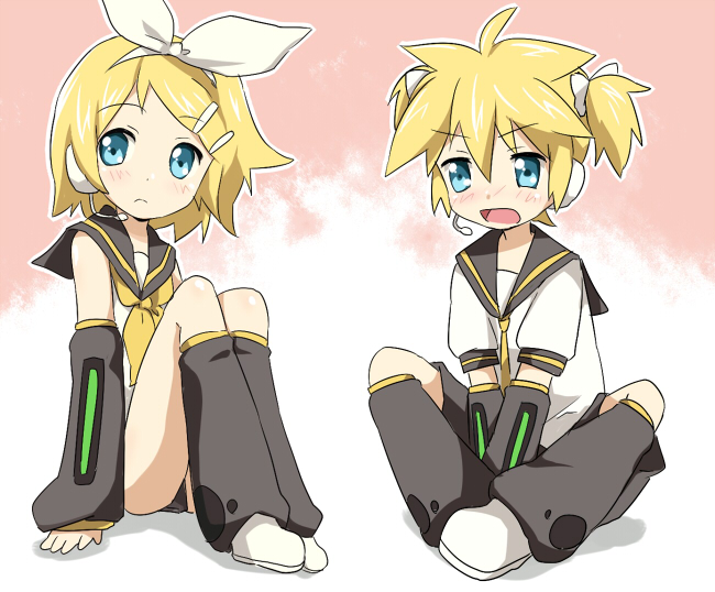 1boy1girlalternate hairstyleblonde hairblue eyesbrother and sisterschool uniformserafukushort hairshort twintailssiblingssittingtwinstwintails