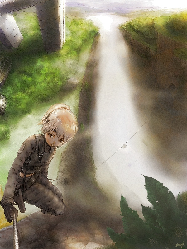 oohara kyuutarou, 1girl, barefoot, blonde hair, cloud, day, dress, feet, female focus, lake, legs, lingerie, long hair, mountain, panties, pantyshot, petticoat, reflection, reflective water, sky, solo, toes, underwear, walking, walking on liquid, water, white panties