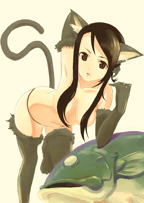 animal earsarmpitsbrown eyesbrown haircat earscat tailelbow glovesfishgloveslong hairtailthighhighstopless female
