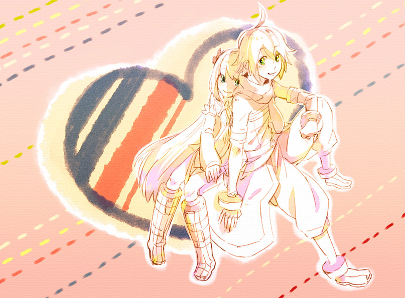 ogura noriko, ranka lee, sheryl nome, macross, macross frontier, absurdres, detexted, highres, official art, scan, third-party edit, 00s, 2girls, :d, ahoge, arm behind head, bandeau, bikini, blonde hair, blue eyes, bracelet, breasts, choker, cloud, cockpit, crossed legs, day, eyewear on head, frilled thigh strap, green hair, jewelry, legs, long hair, looking at viewer, medium breasts, multiple girls, navel, open mouth, red eyes, short hair, sitting, sky, smile, strapless, sunglasses, swimsuit, thigh strap, tree, tube top
