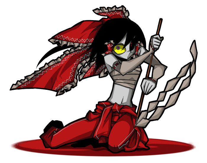 subaru (yachika), ryuuguu rena, higurashi no naku koro ni, 00s, 1girl, beret, between legs, blue eyes, blush, boots, bow, brown boots, brown hair, dress, female focus, from side, full body, hand between legs, hat, lace-up boots, looking at viewer, puffy short sleeves, puffy sleeves, purple bow, short hair, short sleeves, simple background, sitting, smile, solo, turtleneck, white background, white dress