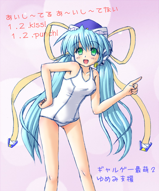 00s1girlblue hairfemale focusga rune poseone-piece swimsuitribbonschool swimsuitsoloswimsuitwhite one-piece swimsuitwhite school swimsuit