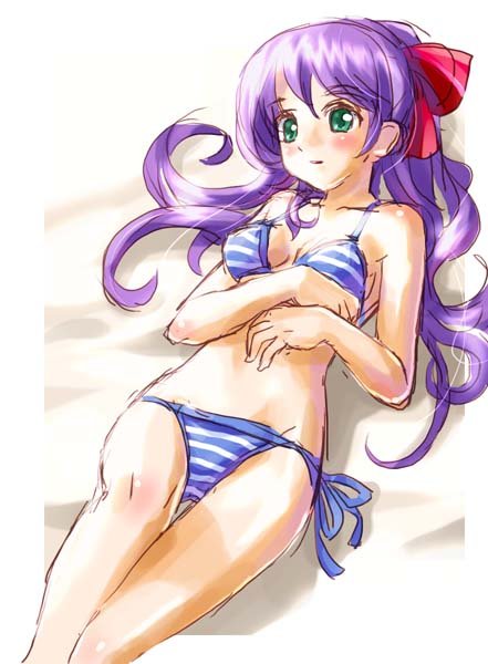 carnelian, white angel, game cg, 1girl, blush, breasts, brown eyes, censored, female focus, female masturbation, hair ribbon, long hair, masturbation, medium breasts, mosaic censoring, nipples, pussy, pussy juice, ribbon, solo, tress ribbon