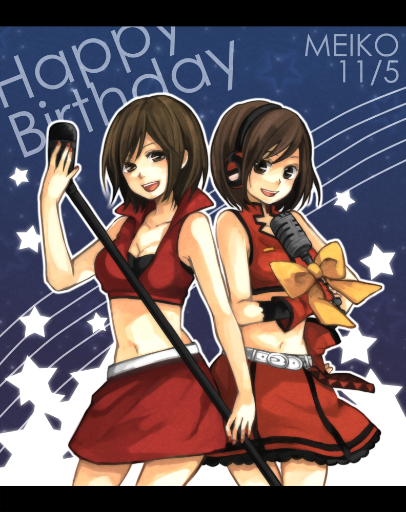 2girlsbrown eyesbrown hairdual personafemale focushappy birthdayheadphonesmicrophonemicrophone standmultiple girlsshort hairtime paradox