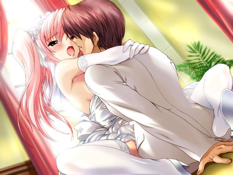 assertiveblushbridal veilbridebrown eyescouplecowgirl positiondresselbow gloveseye contactfemaleFlag for Deletionfootweargloveshairhigh heelshugleg locklong hairlooking at anothermoanmoaningpink hairsexshoesstraddlethighhighstied hairtwintailsupright straddleveilwedding dresswhite dress