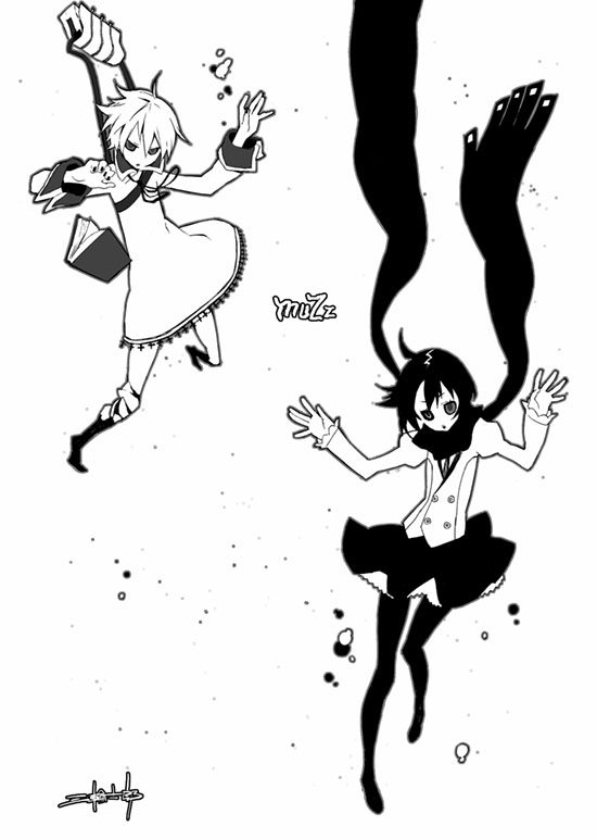 2girlsbagblazerbookdressfallinggreyscalejacketmonochromemultiple girlspantyhosescarfshort hairskirt