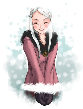 1girlblack glovesblushclosed eyesfemale focusgloveshair ornamenthaircliplong hairsmilesolostraight hairwhite hairwinter clothes