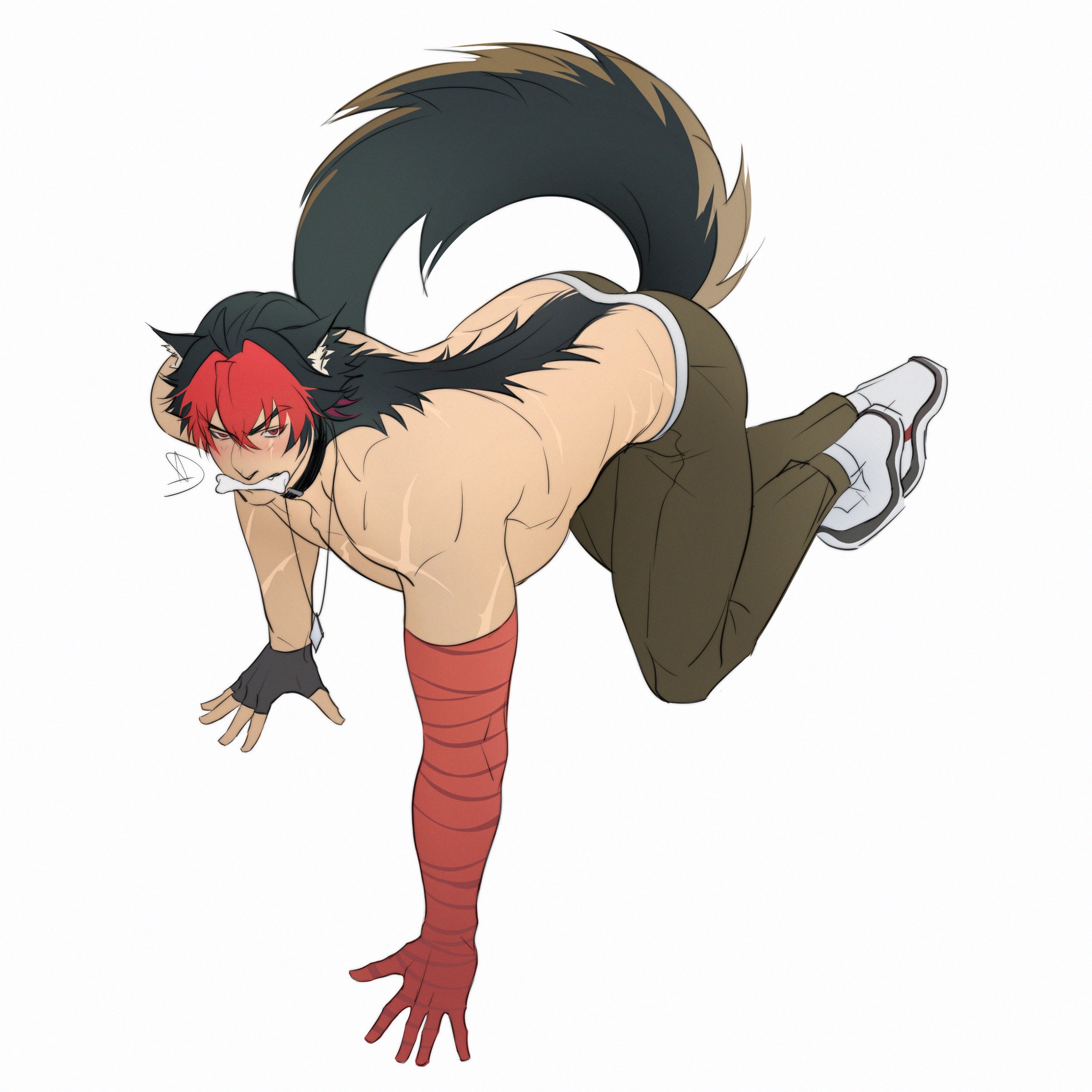 kris (deltarune), deltarune, utdr (toby fox), absurdres, commentary, english commentary, highres, !, 1other, :d, alternate costume, alternate hairstyle, antenna hair, bandaid, bandaid on finger, bandaid on hand, bandaid on knee, bandaid on leg, bike shorts, bike shorts under skirt, black choker, black gloves, black nails, black shirt, black shoes, black socks, braid, braided sidelock, brown hair, chain, chain necklace, character name, choker, chromatic aberration, closed mouth, clothes writing, collarbone, colored inner hair, cropped torso, drawn horns, earrings, english text, face piercing, facial mark, fang, film grain, fingerless gloves, full body, gloves, grin, guitar, hair ornament, hair over one eye, hair tie, hairclip, heart, holding, holding guitar, holding instrument, instrument, jewelry, knees together feet apart, long sleeves, loose socks, miniskirt, mole, mole under mouth, mouth piercing, multicolored hair, multiple views, musical note, nail polish, necklace, o-ring, o-ring choker, one eye covered, one side up, open mouth, other focus, outline, piercing, plaid clothes, plaid skirt, pleated skirt, puffy long sleeves, puffy sleeves, red eyes, red hair, red skirt, ring, shaded face, shirt, shoes, short hair, side braid, side slit, single braid, single fingerless glove, single glove, skirt, smile, snowflake print, socks, sparkle, spiked ear piercing, ssyyk1sk, standing, standing on one leg, star (symbol), star facial mark, star hair ornament, streaked hair, striped clothes, striped shirt, striped socks, teeth, thigh strap, tongue, twitter username, two-tone hair, two-tone shirt, two-tone socks, white outline, white shirt, white socks