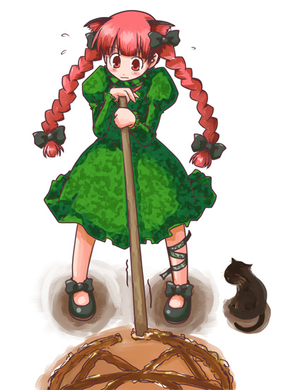 1girlanimal earsblushbowbraidcatcat earsfemale focuslong hairred eyesred hairribbonsolostandingtwin braidswhite background