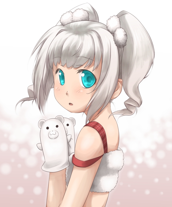 00s1girlaqua eyesblue eyesfemale focushair bobbleshair ornamenthand puppetlooking backmittenspuppetsolostrap sliptwintailswhite hair