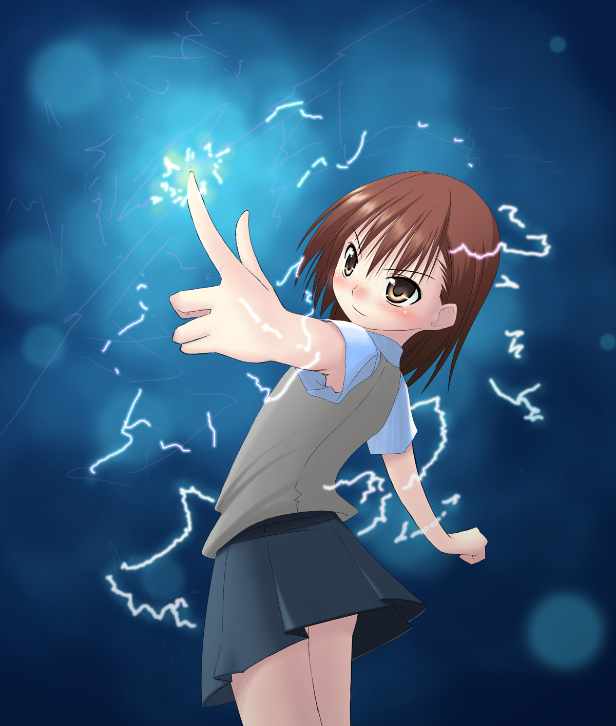 kizaki tamayo, angelic layer, brown hair, pink eyes, school uniform, serafuku, thighhighs