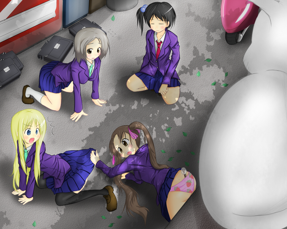 onija tarou, original, 1girl, black hair, black skirt, blush, eating, female focus, food, green eyes, long hair, neckerchief, oekaki, open mouth, school uniform, serafuku, shirt, sitting, skirt, solo, teeth, white shirt