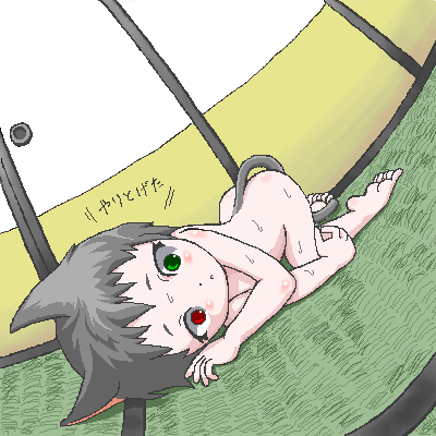 nakamura tetsuya, lipton (dragon steak!), dragon steak! (manga), 1girl, blue panties, brown eyes, brown hair, fake horns, fake wings, female focus, first aid, first aid kit, gun, handgun, horns, panties, red thighhighs, solo, thighhighs, underwear, upskirt, weapon, wings