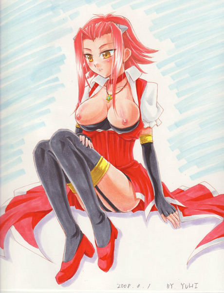 bakkanki, junketsu, kiryuuin satsuki, matoi ryuuko, senketsu, kill la kill, highres, 2girls, anger vein, black hair, clenched teeth, epaulettes, fingerless gloves, frown, gloves, head between thighs, multicolored hair, multiple girls, red gloves, red streaks, sailor collar, single glove, skirt, streaked hair, teeth, thighhighs, yuri