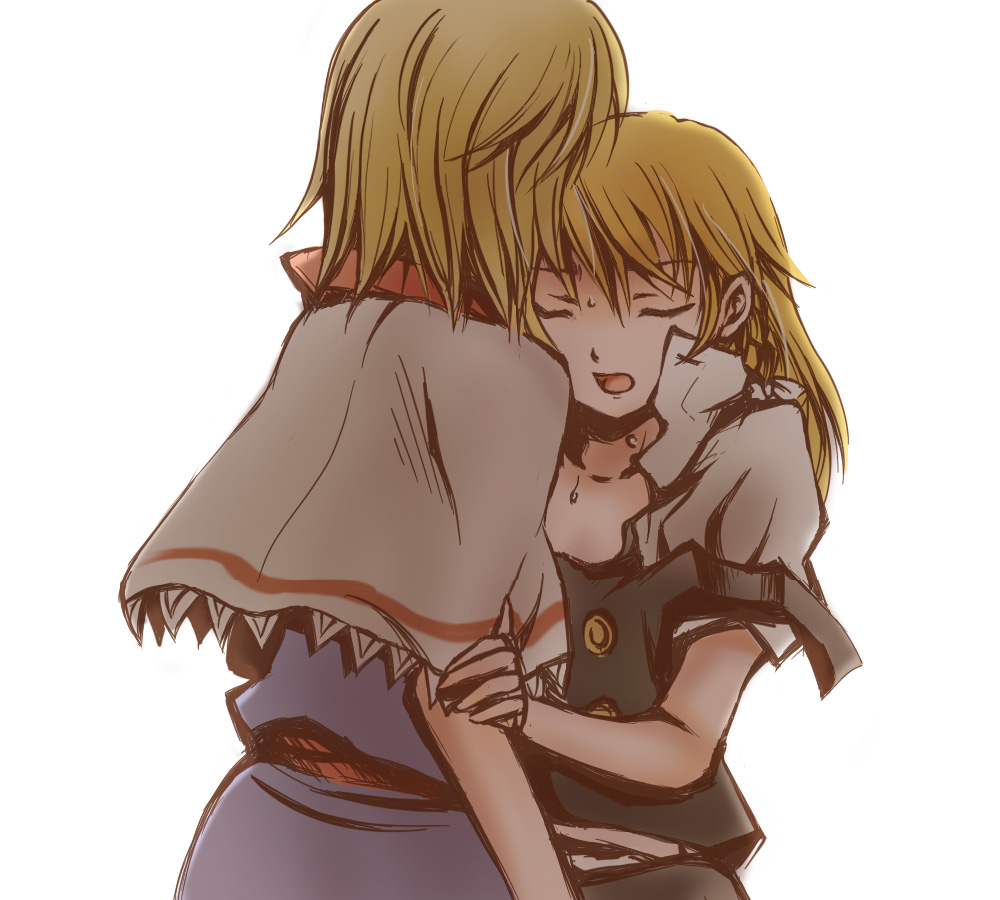 hairu, asahina natsuki, asahina yurina, super real mahjong, super real mahjong p7, 2girls, animal ears, blue hair, breasts, closed eyes, elbow gloves, gloves, halloween, hat, hug, long hair, mole, mole under mouth, multiple girls, one eye closed, rabbit ears, red eyes, red hair, sideboob, small breasts, trick or treat, wink, witch hat