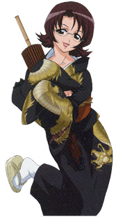adiane, tengen toppa gurren lagann, lowres, non-web source, 00s, 1girl, bikini, black hair, breasts, cleavage, eyepatch, female focus, long hair, scorpion tail, solo, swimsuit, tail, tattoo