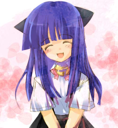 00s1girlanimal earsbellblue hairbowcat earsclosed eyesfemale focuslong hairpink bowschool uniformsolo