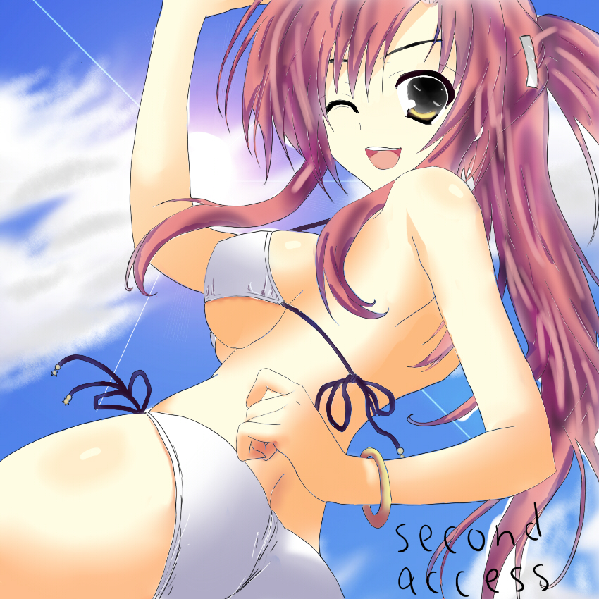 1girlassbikinibraceletbrown eyesfemale focusjewelrylong hairlooking backpink hairsoloswimsuitwhite bikini