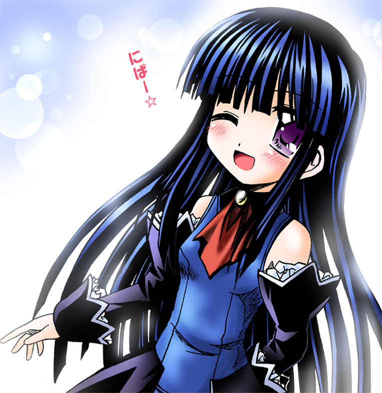 00s1girlangel mortblack hairdetached collarfemale focuslong hairone eye closedone-piece swimsuitopen mouthpurple eyesschool swimsuitsoloswimsuitwaitresswink