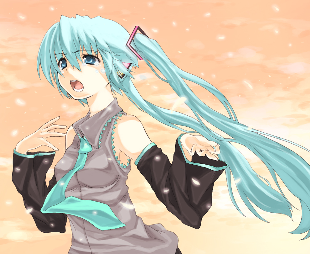 1girlblue eyesblue hairdetached sleevesfemale focuslong hairmatching hair/eyesnecktiesolotearstwintails