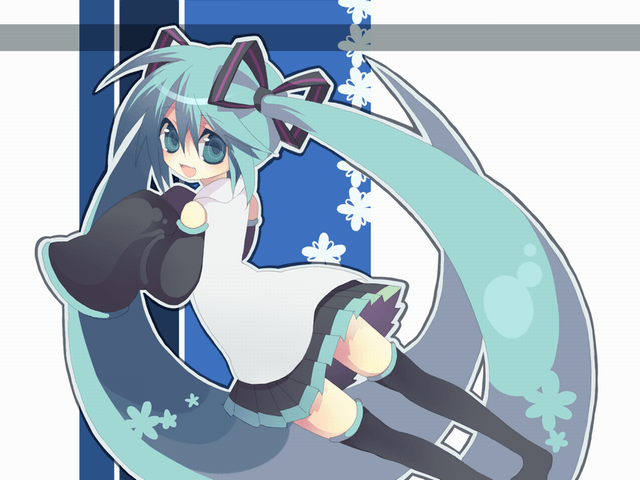 aqua eyesaqua hairdetached sleeveslong hairlooking backskirtsolothighhighstwintailsvery long hair