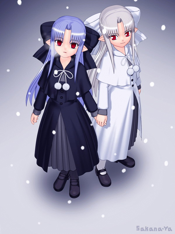 hiiragi tomoka, ichinose kotomi, clannad, 00s, 1girl, arm support, criss-cross halter, dress, female focus, hair bobbles, hair ornament, halterneck, instrument, solo, twintails, two side up, violin