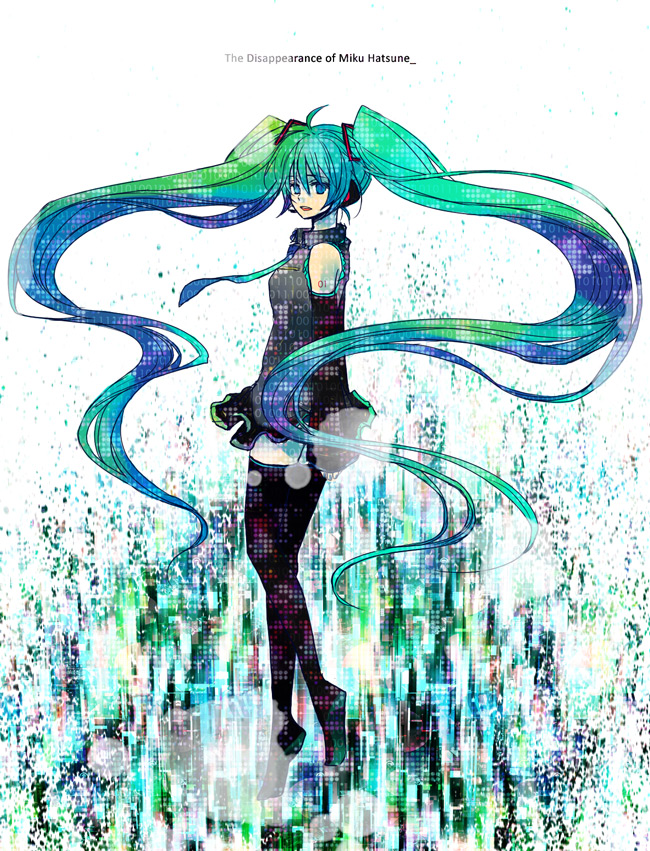 detached sleevesgreen eyesgreen hairheadsetlong hairnecktieskirtthighhighstwintailsvery long hair