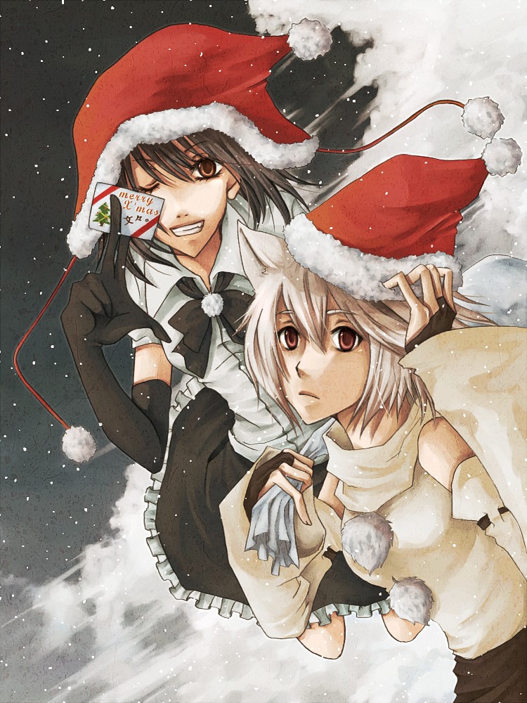 2girlschristmasdetached sleeveselbow glovesfemale focusgloveshatmultiple girlssanta hatsnowwink